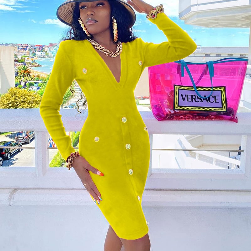 The V-neck collar adds a touch of elegance, making it perfect for both casual outings and more formal occasions. Available in three vibrant colors – yellow, black, and rose red – you can choose the one that best reflects your personality. With sizes ranging from S to XL, there's a perfect fit for everyone!